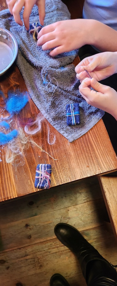 Největší přínos akce však spočíval v přímé interakci mezi českými a polskými dětmi během tematických workshopů. Žáci si společně vyzkoušeli náročnou techniku práce s ovčím rounem. Metodou plstění vyráběli originální přívěsky na klíče ve tvaru srdce a následně technikou suchého plstění barvenou vlnou zdobili přírodní mýdla. Právě u těchto tvořivých činností se naplno projevila síla mezinárodní spolupráce; i přes počáteční jazykový ostych děti velmi přirozeně kooperovaly, vzájemně si pomáhaly s technikou zpracování a sdílely radost z hotových výrobků. Tato společná tvorba se stala přirozeným mostem k překonání komunikačních bariér a k navázání nových přeshraničních přátelství.