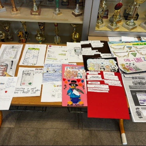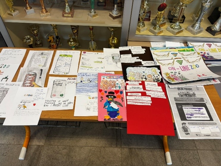 V rámci výtvarné výchovy vznikly poutavé komiksy a plakáty, které se objevily na chodbách školy a upozorňovaly: „Internet není hra – mysli, než klikneš.“