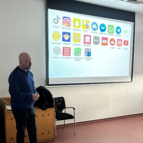 A zatímco podobné akce často končí jednorázovou besedou, zde šli o krok dál: projekt začal školením učitelů, pokračoval měsíční výukou napříč předměty a uzavřela jej veřejná beseda pro rodiče s uznávaným odborníkem na online bezpečnost docentem Reném Szotkowským z Univerzity Palackého a projektu E‑bezpečí.