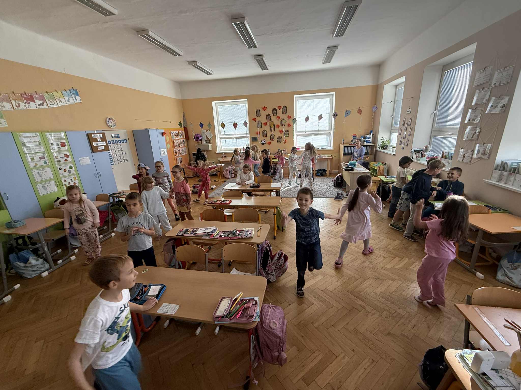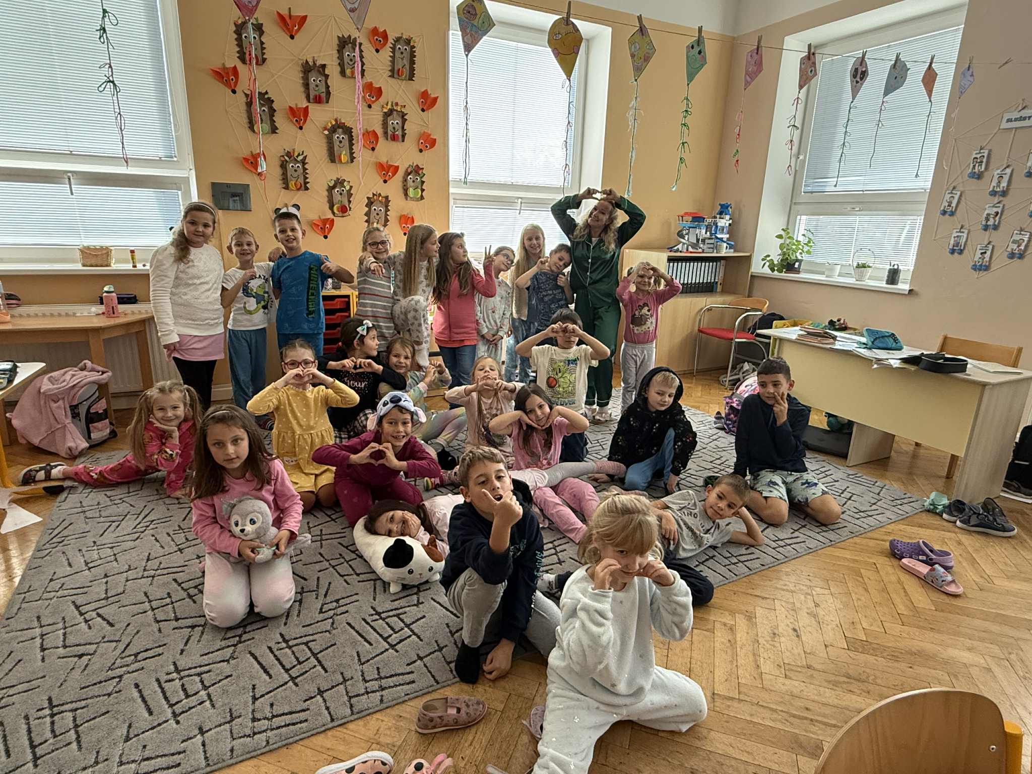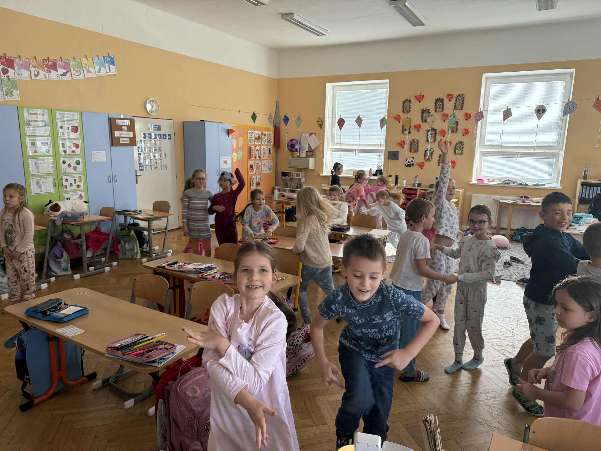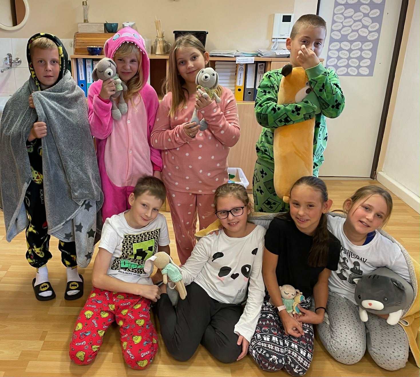 Také naše třídy 1.C, 2.C a 4.C se zapojily do akce Den v pyžamu a podpořily tak rodiny s nemocnými dětmi. Děkujeme rovněž paní kuchařce, která šla do výzvy s námi :)