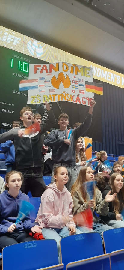 Společně se třídou 9.A a chlapci z 8.A a 6.A jsme se těšili na čtvrtek 11. prosince, kdy se měl odehrát zápas o 9.–12. místo. Tušili jsme, že „naše holky“ pravděpodobně neuvidíme (ty se určitě umístí lépe), ale ani utkání Německo – Nizozemsko nemuselo být nudné. A skutečně – oba týmy se po celý zápas přetahovaly o vedení a možná i díky našemu hlasitému fandění nakonec zvítězilo Německo 4 : 2.