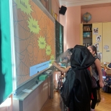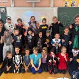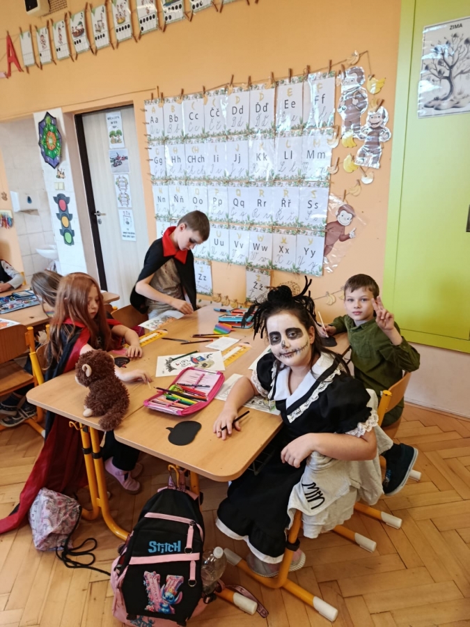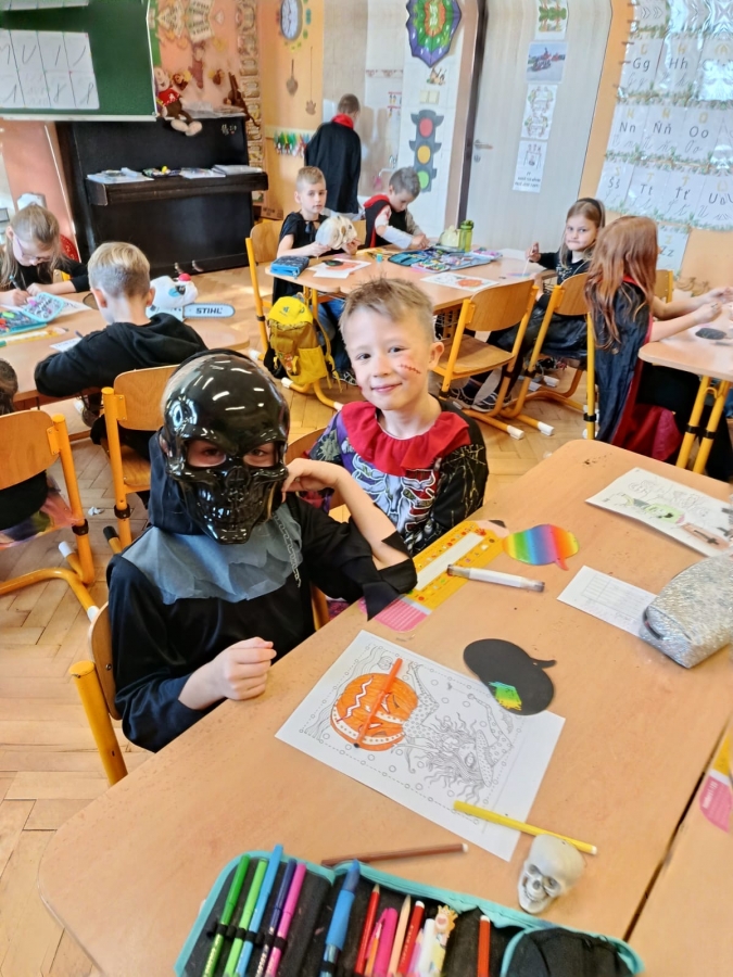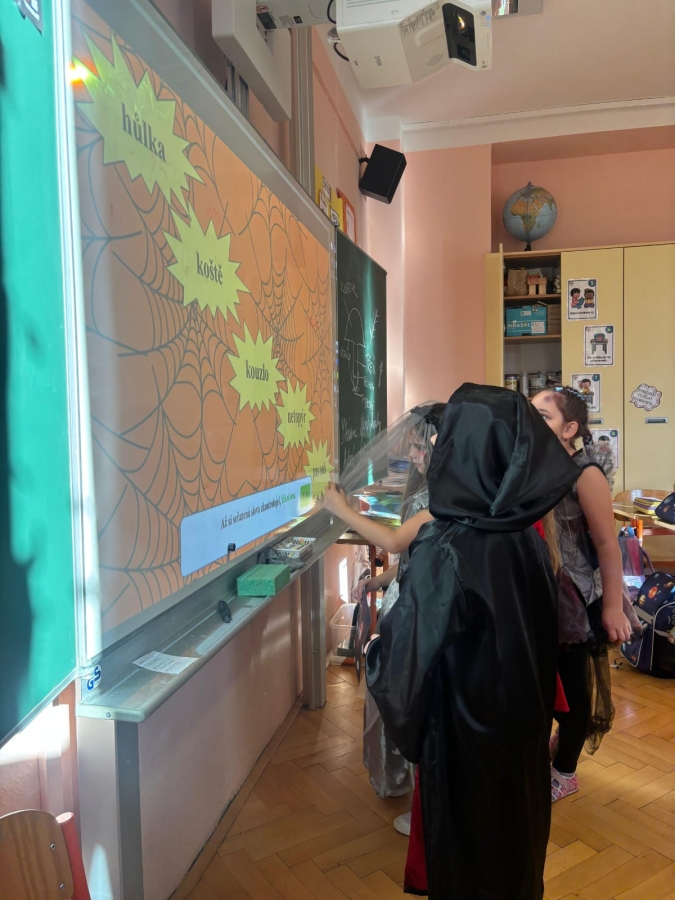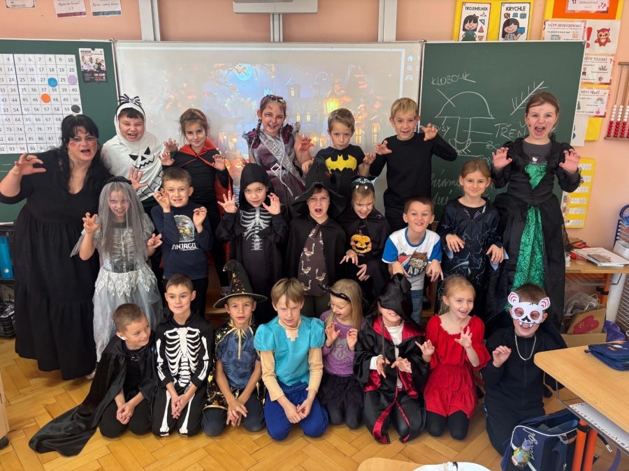 Dne 31. 10. 2025 jsme ve škole zažili strašidelnou zábavu! Již ráno jsme přišli ve veselých i děsivých maskách a pustili se do halloweenských aktivit. Házení pavoučků do sítě, skládání abecedy a puzzle, početní diktáty s obrázky i úkoly na interaktivní tabuli prověřily naši šikovnost, postřeh i rychlost.
