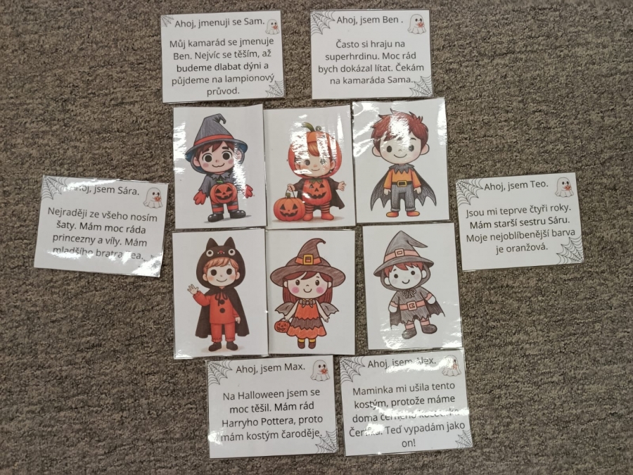 Nechybělo ani luštění tajenky a hry rozvíjející hmatový smysl, které nám ukázaly, že učení může být opravdu zábavné. Vše bylo pečlivě připravené, a hlavně plné halloweenského kouzla – den jsme si náramně užili a odnesli si spoustu skvělých zážitků.