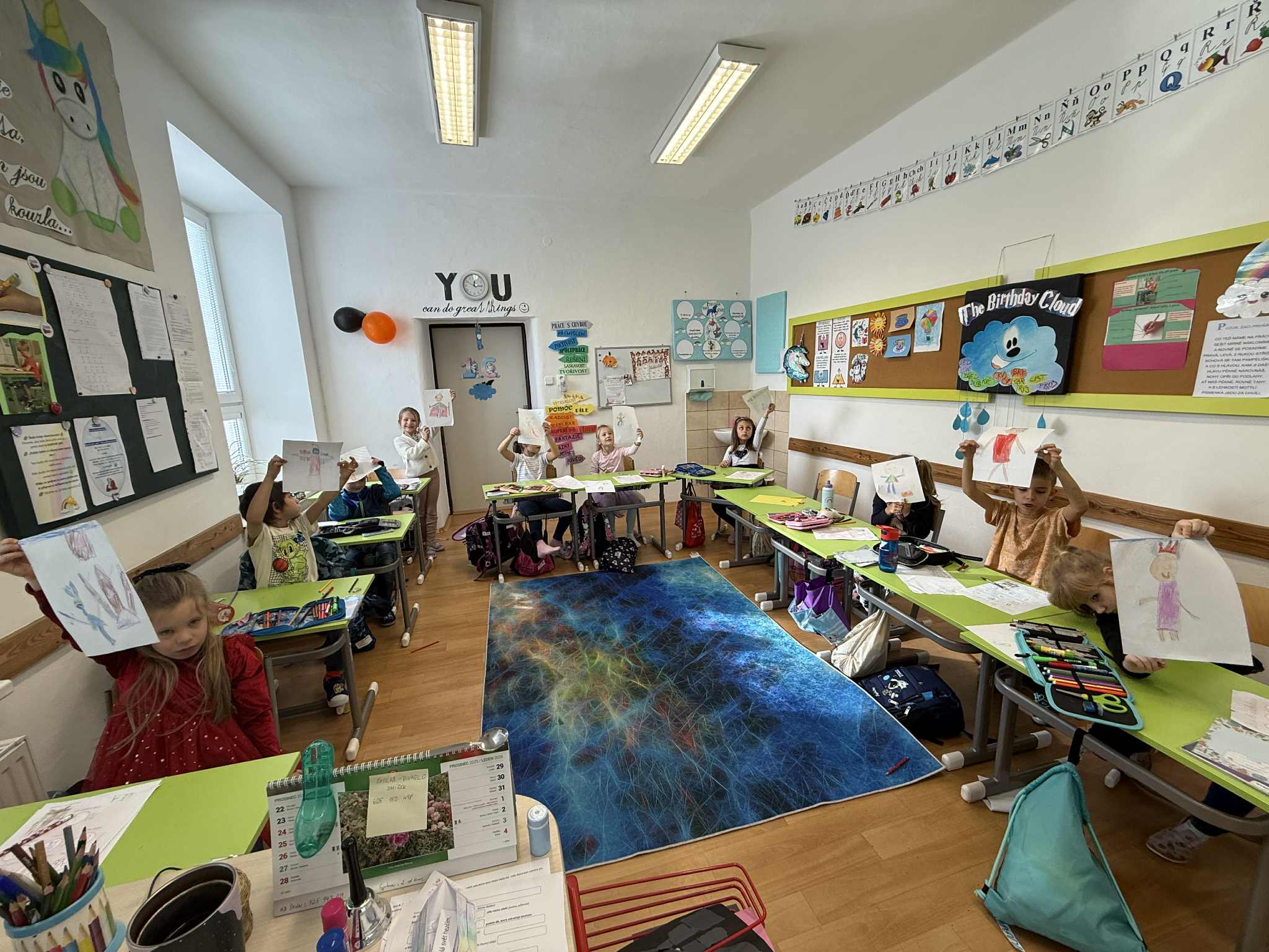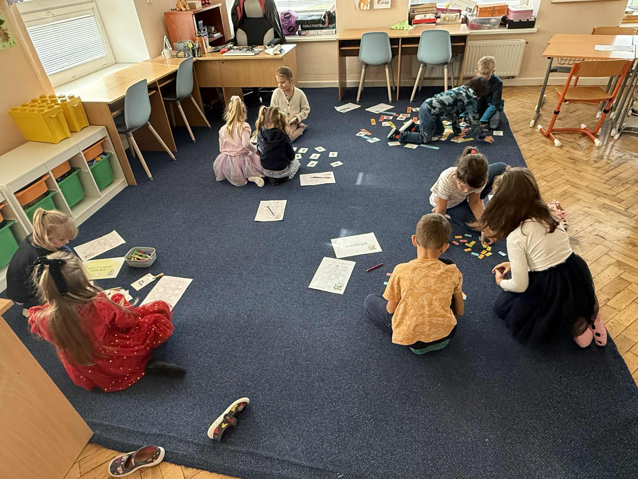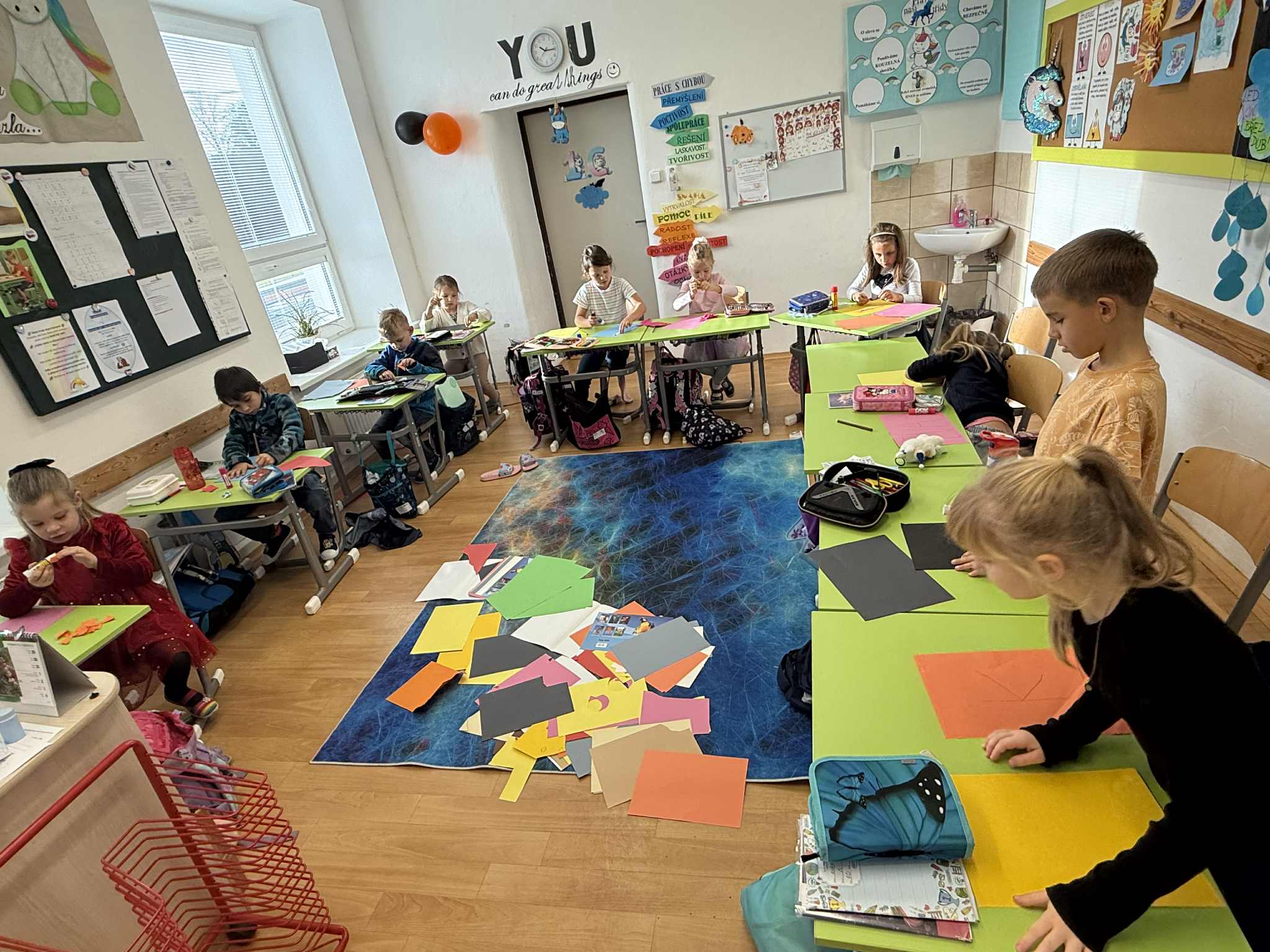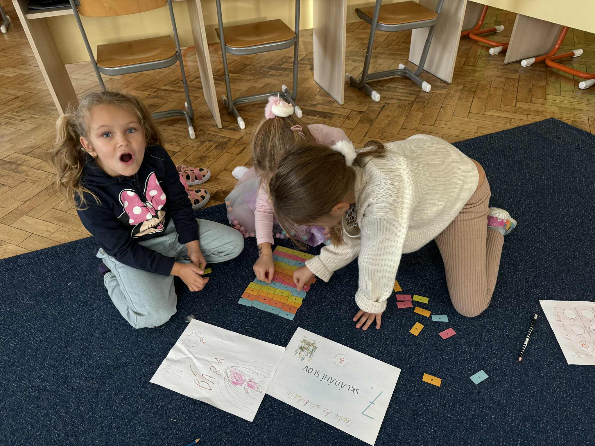 Živá abeceda a uvolňovací cviky jsou za námi! Byl čas vydat se na Cestu ke slabikáři, která byla tvořena několika stanovišti s úkoly - nebyla jednoduchá, ale zvládli jsme ji!