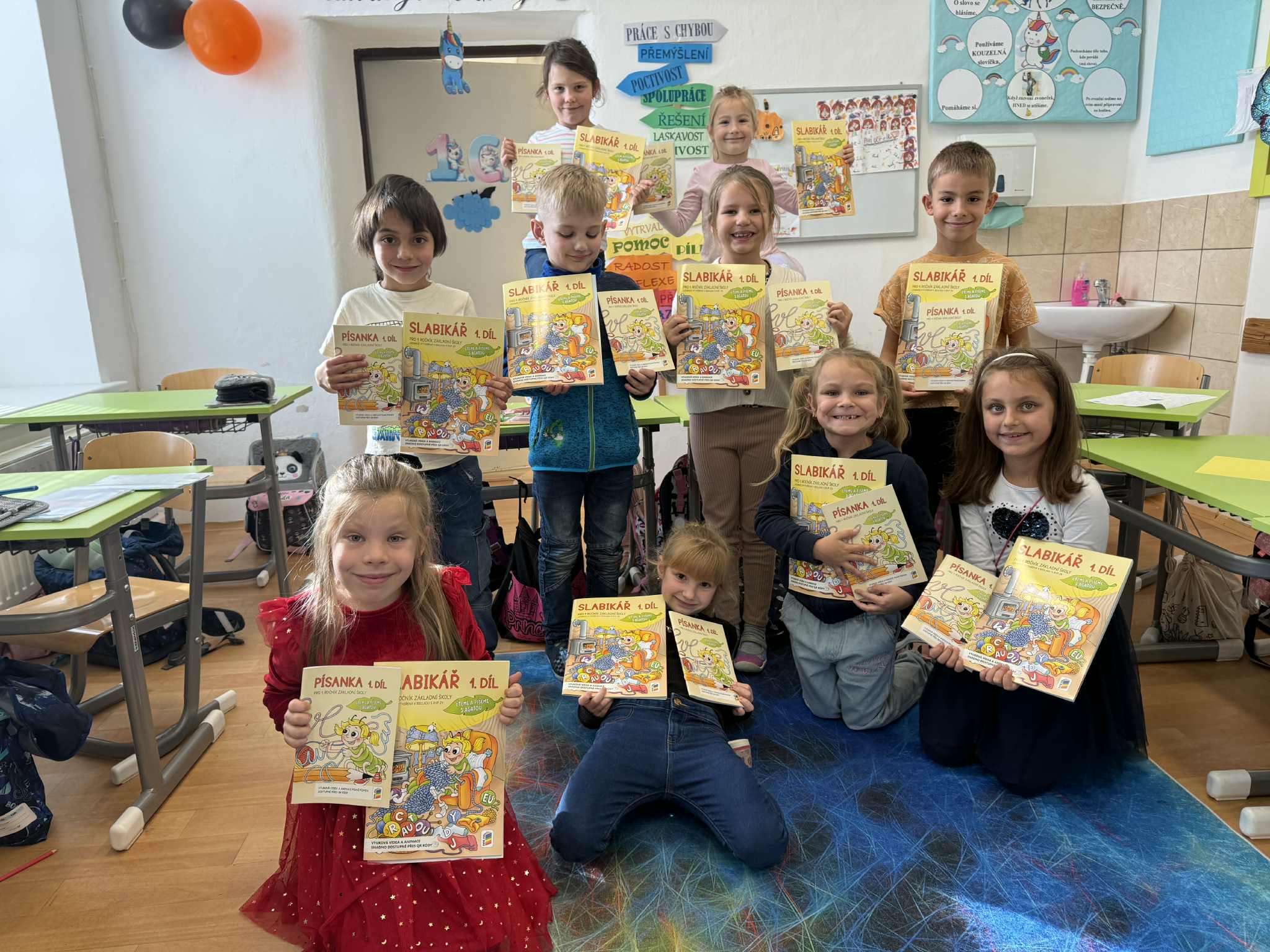 Odměnou pak bylo slavnostní předání SLABIKÁŘE a PÍSANKY za zvuku fanfár pro každého prvňáčka.